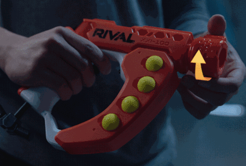 Select your curve to fire rounds left, right, straight, or down and take the competition by surprise with the NERF RIVAL CURVE SHOT FLEX XXI-100 blaster. Fire around corners, barriers, and obstacles with this blaster that unleashes rounds in a curved trajectory, giving you the ultimate strategic competitive advantage! Turn the rotating muzzle to choose whether you want the round to go straight, left, right, or down. Your opponents may be out of your line of sight, but with this NERF RIVAL CURVE SHOT blaster, they can still be within range, so take aim and curve your shot! Includes 5 Official NERF RIVAL rounds and has integrated onboard round storage. Pull down the priming handle to open the breech, load 1 round, and close the breech. Then select your curve, and press the trigger fire. Includes trigger lock. Eyewear recommended (not included). No batteries required. Available at most major toy retailers nationwide.