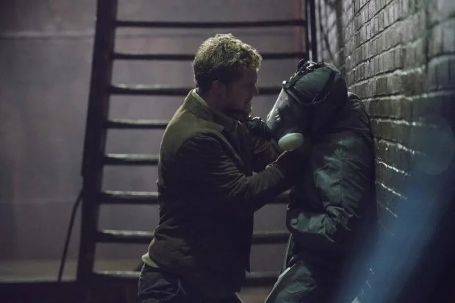 Netflix has since released a couple new photos from the series for fans to check out. They include Iron Fist (Finn Jones) throwing a guy in a gas mask against a wall and Jessica Jones (Krysten Ritter) walking down a street with her best friend, Trish Walker (Rachael Taylor).