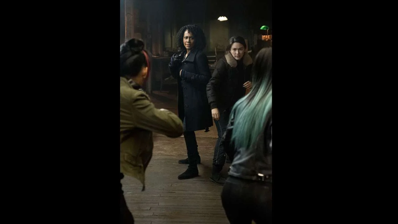We also get a look at K’un-Lun Davos (Sacha Dhawan), Joy Meachum (Jessica Stroup), and Mika Prada (Julee Cerda) looking at a mysterious box. In the other photo, we see Davos being held at knife-point by Alice Eve’s villain, Typhoid Mary.