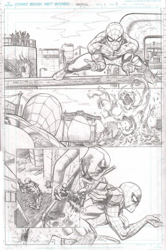 During the "Spider-Man and his Amazing Friends" Comic-Con panel, a new comic book series was announced called Spider-Man/Deadpool! It is bring developed by Joe Kelly and Ed GcGuinness, who worked together on the Deadpool comics back in the '90s. It's always been fun seeing these two Marvel characters team up, and an official comic book series that focuses on their adventures together could prove to be amazing! The comic will be released this fall, and you can see a piece of cover art above and a preview of some pencilled pages from the first issue below.