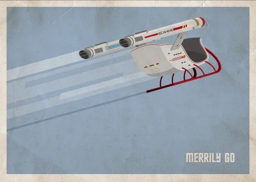 With the holidays approaching, artist Scott Park has released a couple more geeky Christmas card designs for his "Hall of Heroes" series. The one below is Star Wars themed and features Jabba The Hut getting into the Christmas spirit, and the one above was inspired by Star Trek and gives us a fun design for an Enterprise sleigh.