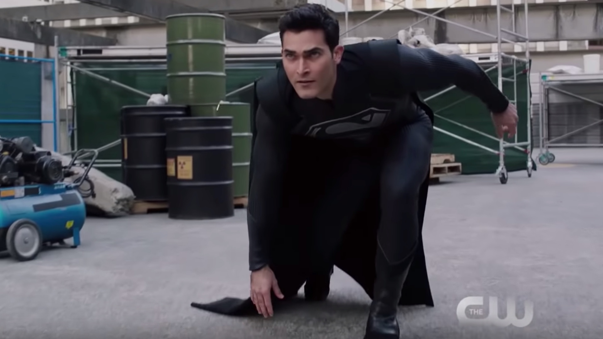 The promo fills us in on some story details and includes footage of Batwoman (Ruby Rose), The Monitor (LaMonica Garrett), and Superman (Tyler Hoechlin) giving us a superhero landing while wearing his black suit.
