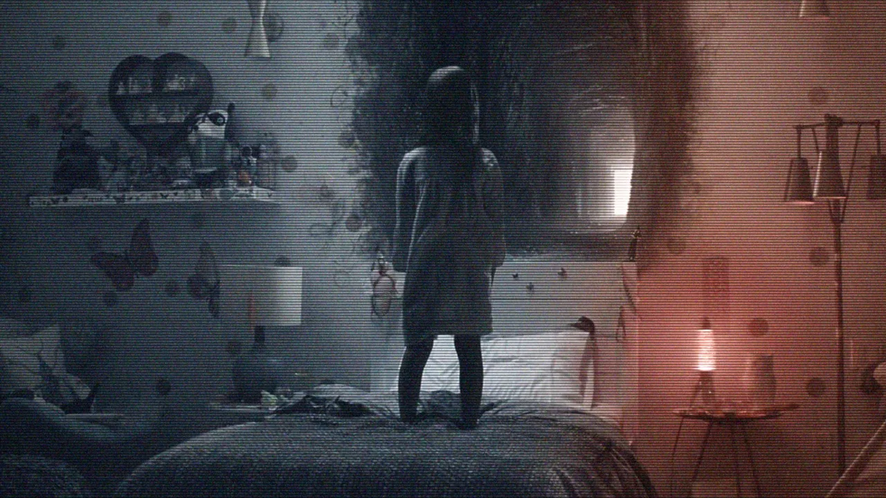 Paranormal Activity: The Ghost Dimension centers on the Fleeges — father Ryan (Chris J. Murray), mother Emily (Brit Shaw) and their young daughter Leila (Ivy George) — who move into a house and discover a video camera and a box of tapes in the garage. When they look through the camera’s lens, they begin to see the paranormal activity happening around them – including the re-emergence of young Kristi and Katie.