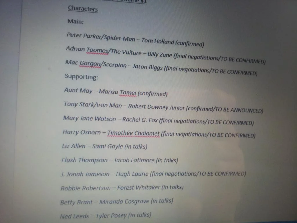 A couple of days ago, you may have seen a photo floating around the internet of a potential cast list for Sony and Marvel's upcoming Spider-Man reboot. We didn't bother posting it because it didn't come from a trusted source, and it could very well have been entirely made up. It claimed, among other things, that Billy Zane was in negotiations to play Vulture and Jason Biggs was in talks to play Scorpion, and if that seems like totally insane casting, that's because it's not real.