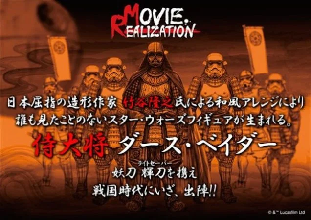 Bandai revealed some new Star Wars toys at the Tokyo Toy Show last week. Among them was this jaw-droopingly badass Darth Vader samurai action figure. It's called "Star Wars Movie Realization Samurai Taisho Darth Vader." We've seen some custom made toys like this in the past, but this 6-inch figure is the real deal that you will be able to own. Also, from the art below it looks like there is going to be some Samurai Stormtrooper figures as well!
