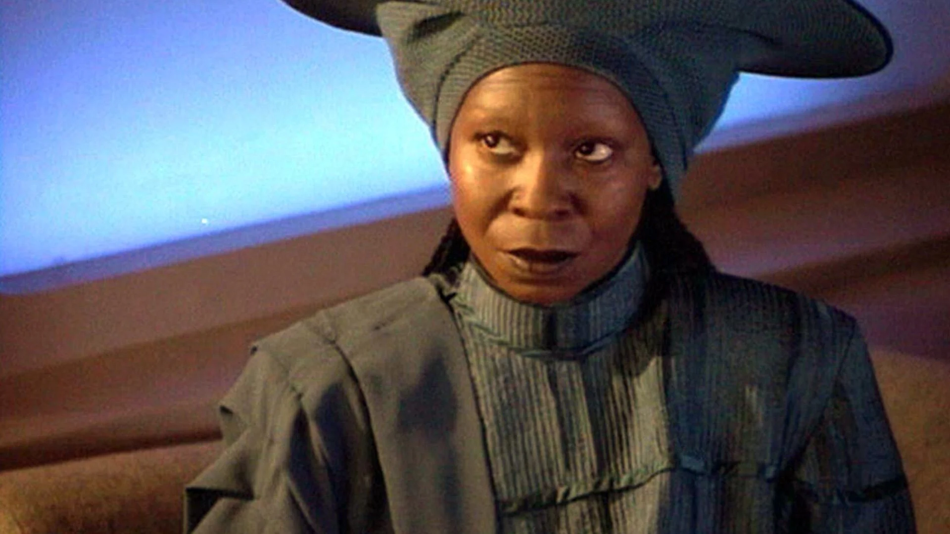 For those of you who have watched Star Trek: The Next Generation, you know that Goldberg played a character named Guinan in the series, an El-Aurian race of long-living psychically-endowed "Listeners." She was 600 years old TNG and served as the lounge hostess of the U.S.S. Enterprise. As a bartender, she was also a close confidant of Jean-Luc Picard.