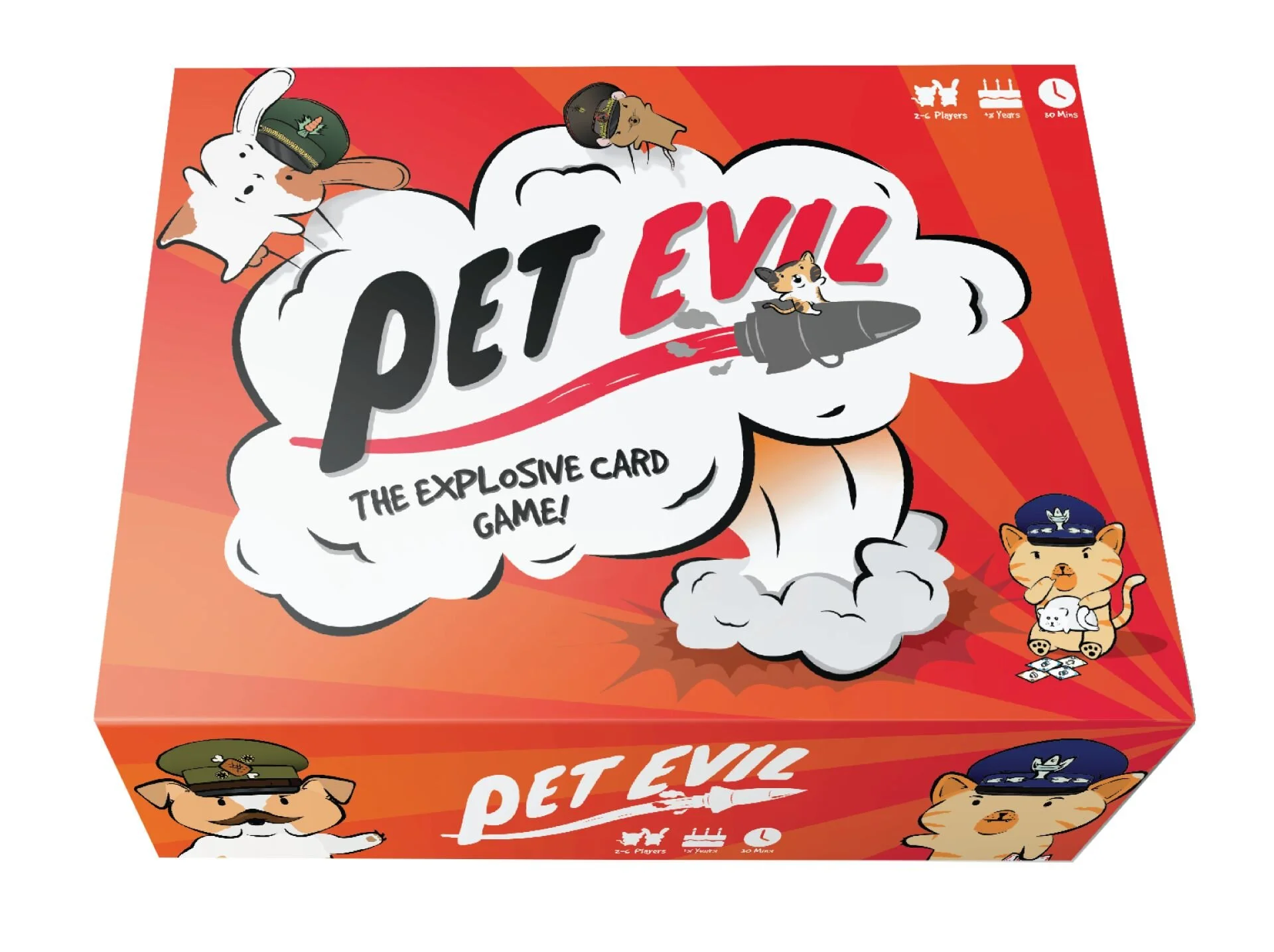 If you’re into humorous strategy games, you may want to check out Pet Evil. The game has launched its second Kickstarter today, and Studio 71 has been gracious enough to share an exclusive look at some updated card artwork! In addition to updated card designs, some mechanics have also been updated. In Pet Evil, you play a pet who is essentially an army general and you try to take over the world. I think I know a mouse or two who may be interested. The game looks fairly simple in terms of mechanics but is sure to be a blast with friends as you each try to build your missiles. One thing I do appreciate about the game is that it has guides on how to adjust the game for shorter or longer play sessions.