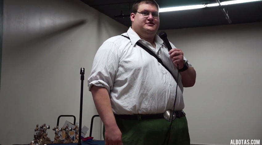 via: http://albotas.com/post/91598233656/spot-on-peter-griffin-impersonator-does-stand-up At the 2014 Allentown Comic Con there was a cosplay contest judged by celebrity cosplayers Riki Lecotey a.k.a. "Riddle" and Nicole Marie Jean. To keep the crowd entertained while they deliberated, they asked a spot-on Peter Griffin cosplayer to take the mic and he completely KILLED it!