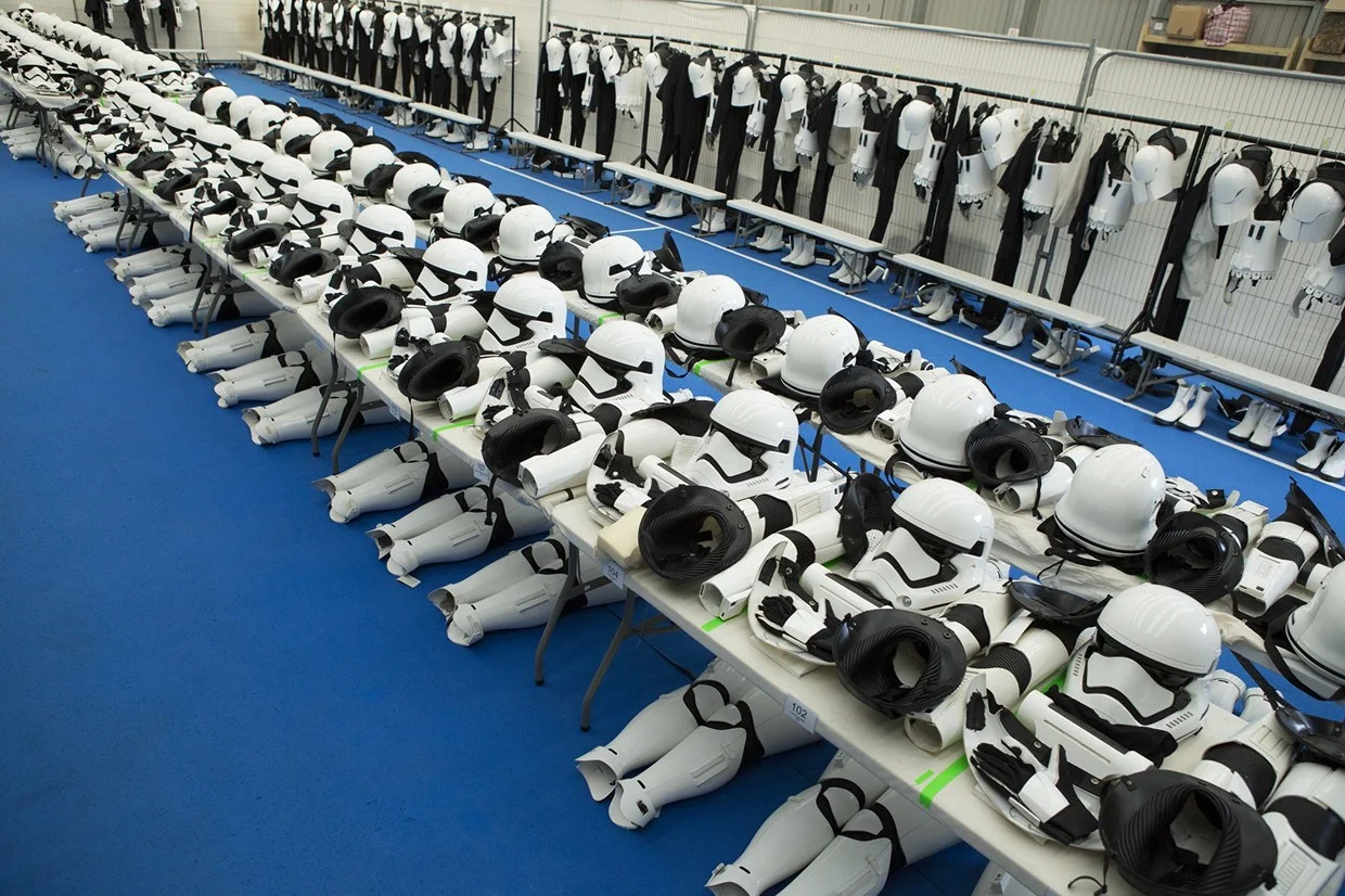 It would have been such an amazing experience to be a part of any of the Star Wars films, even if it was just as an extra playing a Stormtrooper. There are a lucky few who been able to put on the Stormtrooper armor over the years. As you know, the Stormtroopers got a very cool new look for Star Wars: The Force Awakens, and an army of extras were used to play these members of the First Order military. Thanks to Wired, we have a few photos of the dressing room where these people suited up and prepared for shooting. I'd love to take just one of those costumes home with me.