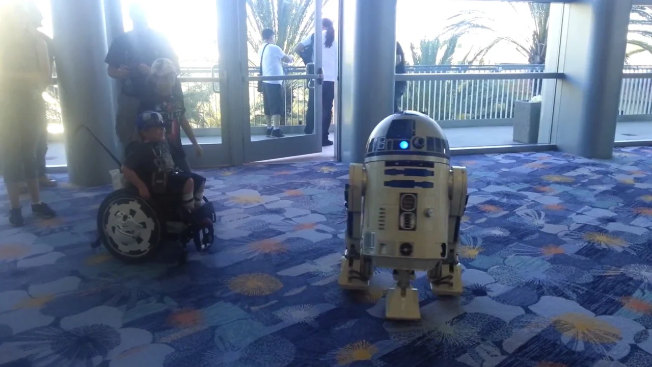 A video has found its way online from Star Wars Celebration that features R2-D2 interacting with a young boy in a wheelchair, and it's awesome. R2-D2 seriously made this kid's day, and as you'll see in the video the boy had a blast playing around with the droid. One of the things that I love most about these events is the joy that they bring to kids. I was able to bring my own little girls to the event, and it's an experience I know that they'll never forget, just like the kid you'll see in the video below.