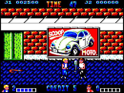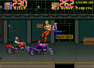 The gameplay innovations brought to the arcades in Renegade and the fast-paced style of Kung Fu Master would eventually be fused together as Taito developed its next project - Double Dragon. Double Dragon featured the scrolling screen, the backdrops of alleys and subways, but would add important elements like co-op multiplayer to the genre and the ability to use enemy weapons, such as baseball bats and barrels.
