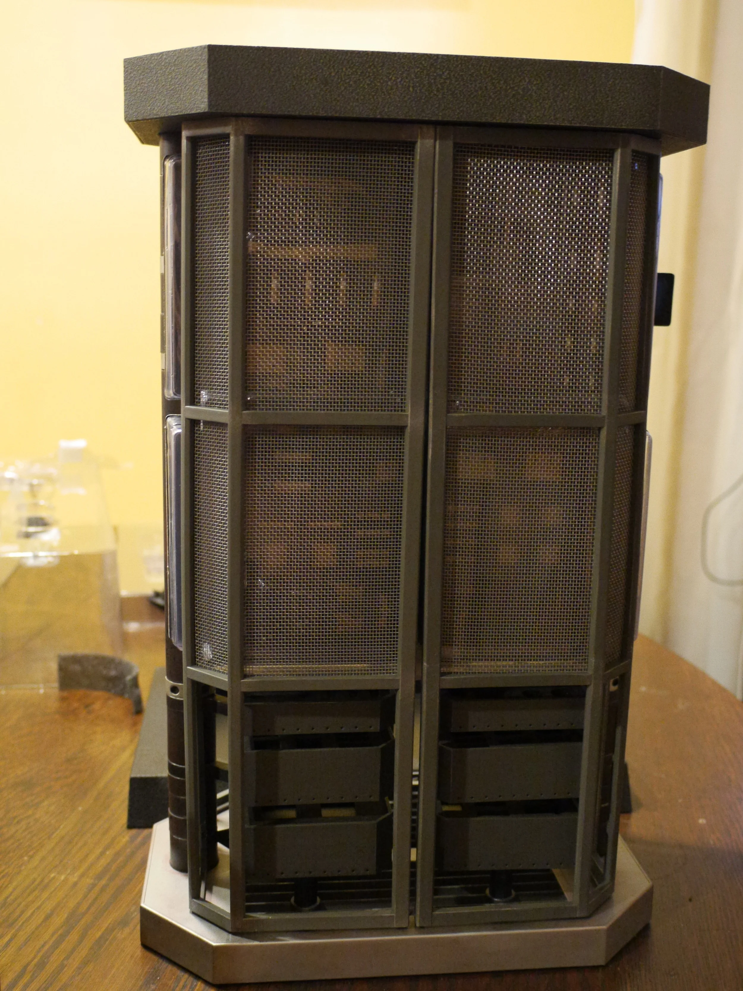 It’ll probably take you about an hour to put everything in its place and then play around with exactly which hand/tool/mouth combination you want to pose him in for your display. (There is also an extra empty cowl so that you can pop the boots off and hang the empty suit in the armory.) And I hope that you will display this. I know different kinds of collectors — some who never ever ever open the box, some who set it up for display and then never touch it again, and some who full on play with their toys. This set is for the last two groups. You could buy this, keep the box sealed for a few years, and then sell it to someone else, but what’s the point? The craftsmanship and detailing are too good to never be seen, and the different hands and faces are too much fun to never touch. Leave it for those of us who want to actually look at it sometimes.