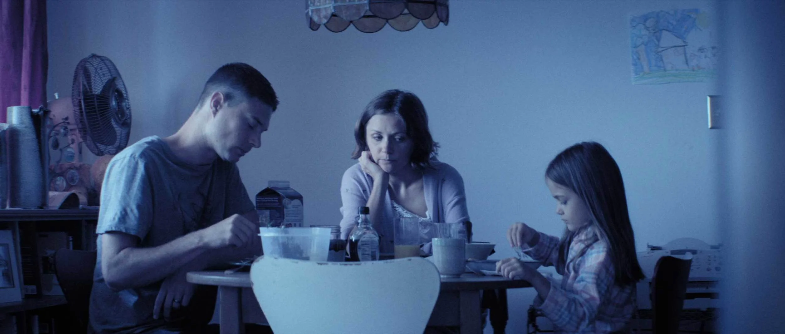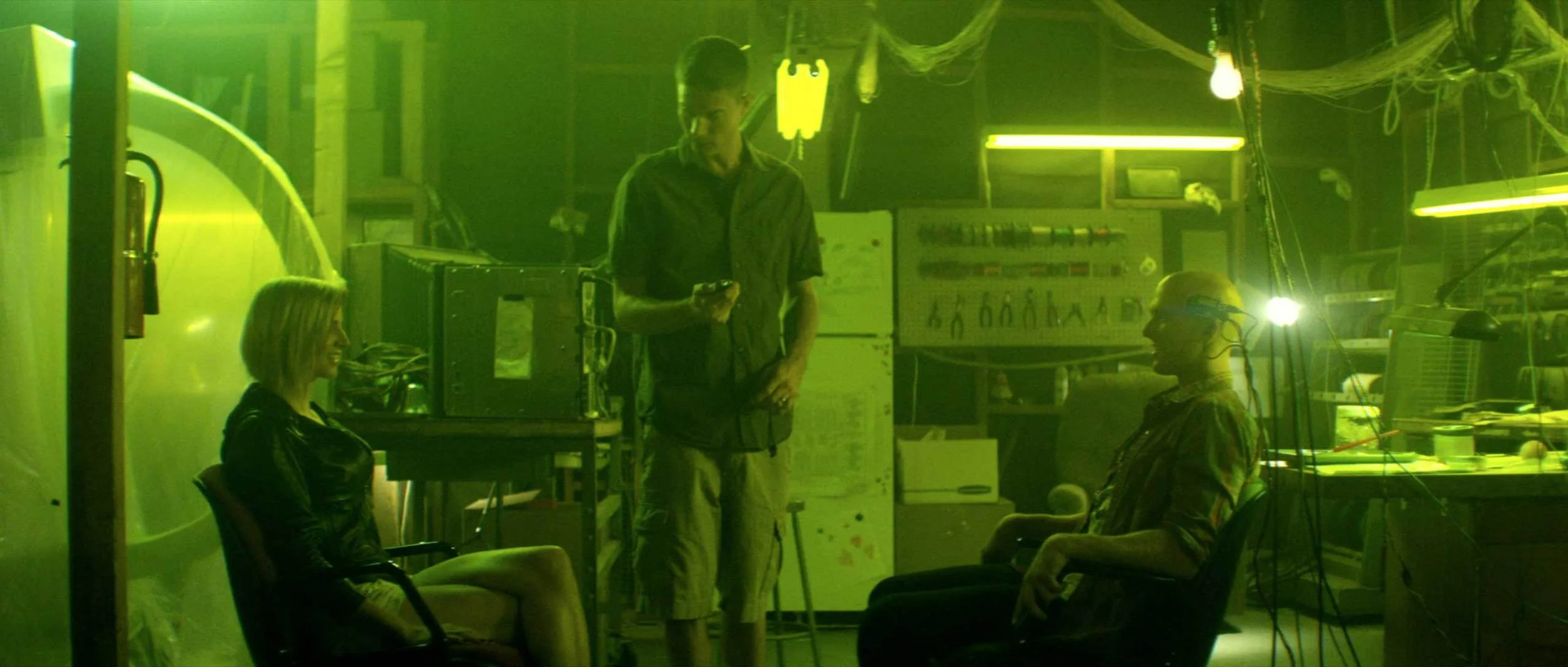 The first half of Listening feels like another sci-fi movie, Primer, but a bit more polished. Heavy tech dialog and building montages are broken up with the emotional personal lives of David and Ryan. David's marriage to Melanie (Christine Haeberma) is tenuous, and his single-minded focus makes him a bad father. Ryan lives in a studio apartment with is ailing grandmother and is an unapologetic womanizer. Because of the time required by the main storyline's science, the emotional scenes don't hold a lot of air. You don't get enough time to see the characters processing what's going on.