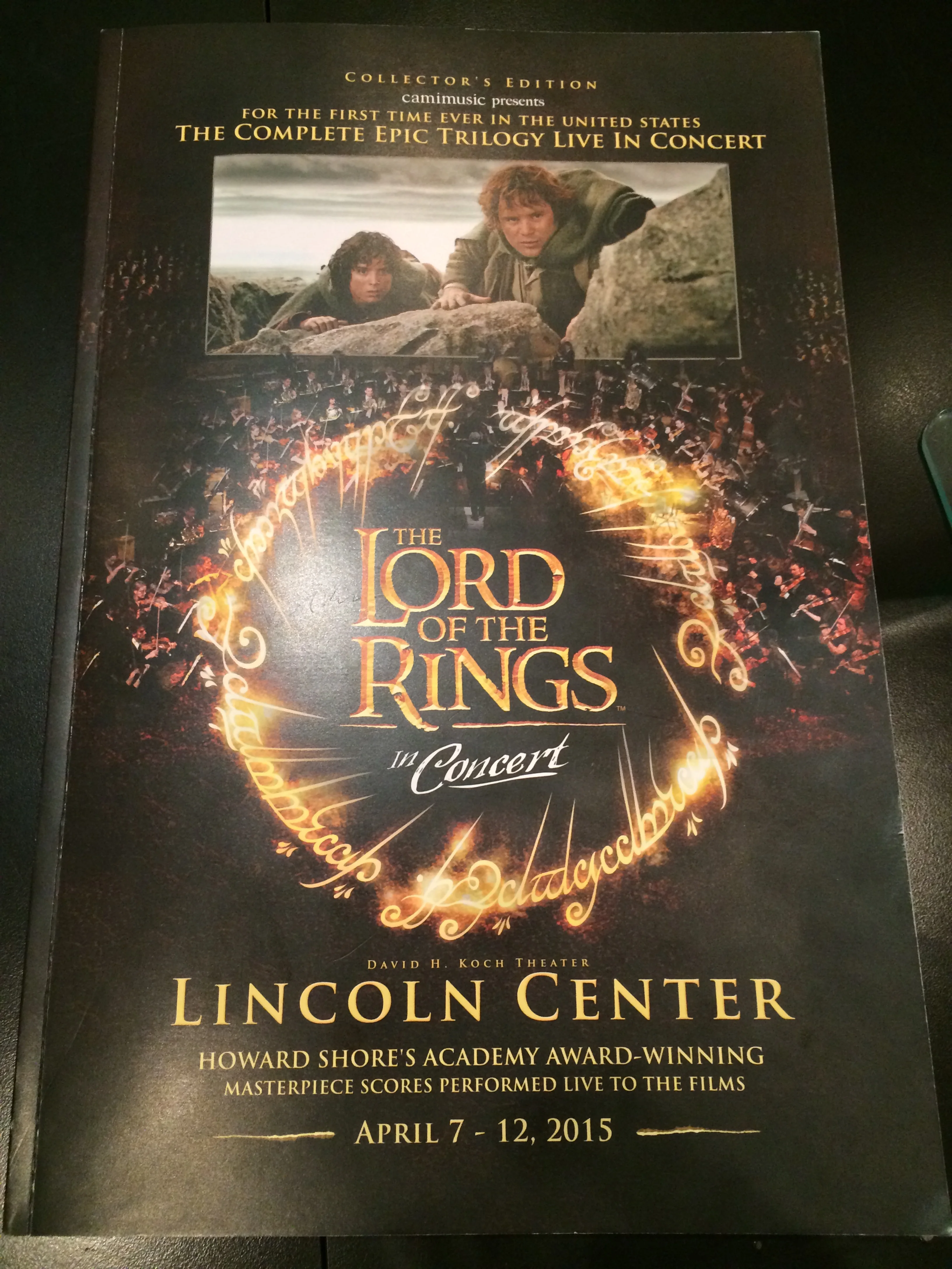From April 7th-12th, the music from the entire trilogy was performed twice by the musicians of Switzerland's 21st Century Symphony Orchestra while Peter Jackson's films played on a giant screen behind them. I was on vacation in New York City last week, and while I was there, I had the opportunity to attend a performance of The Fellowship of the Ring live in concert at the Lincoln Center. It was an amazing event that increased my appreciation and admiration for both the film and the score even more than I thought possible.