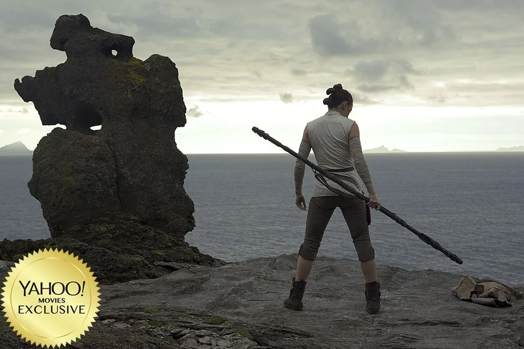 A new photo has surfaced from director Rian Johnson's Star Wars: The Last Jedi. The photo was shared by Yahoo! Movies and as you can see it features Rey (Daisy Ridley) in the middle of training on the island of Ahch-To, which, as you know, is where Luke Skywalker (Mark Hamill) and the first Jedi Temple reside. She's not wielding the lightsaber yet, though.