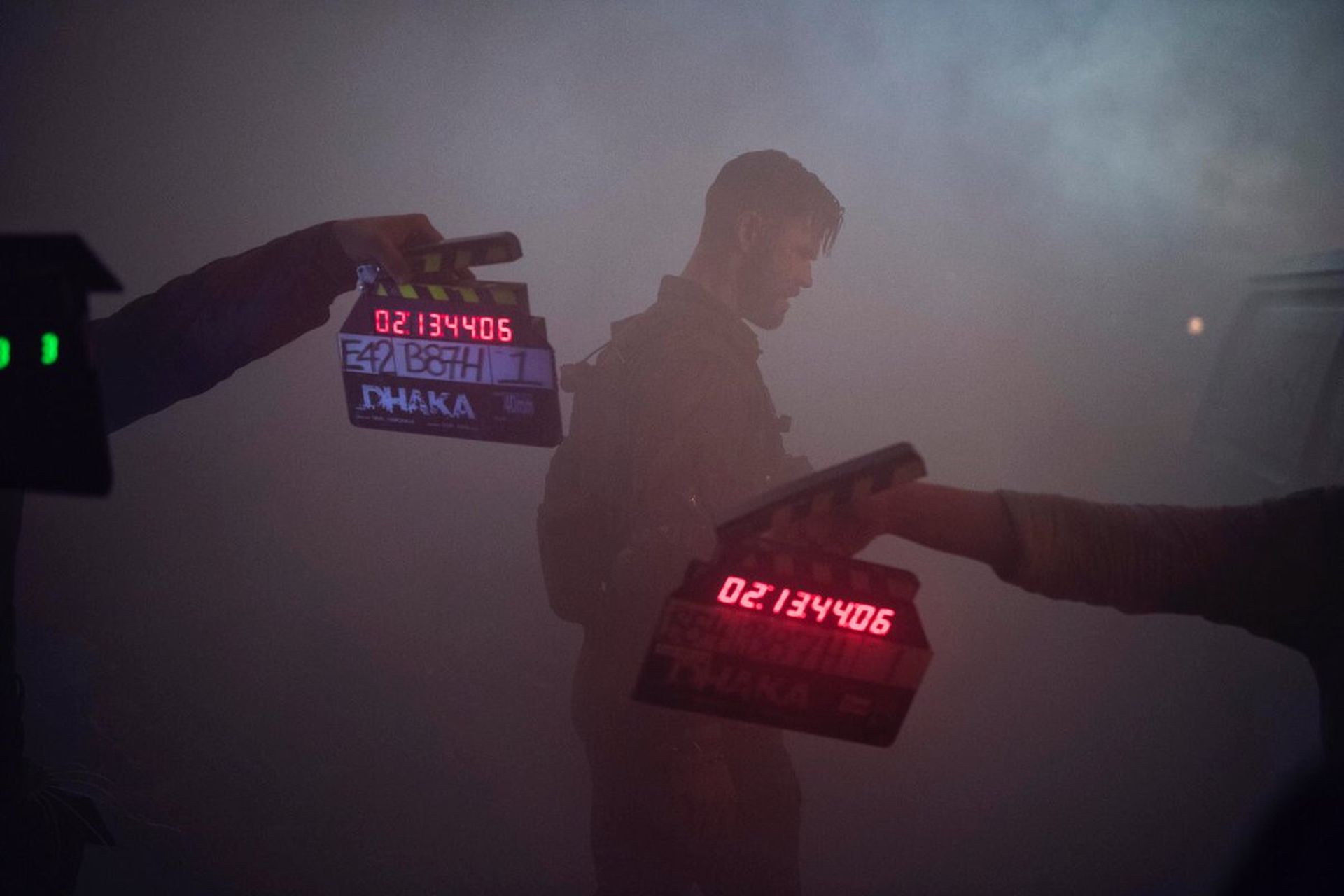 Anthony and Joe Russo recently shared a photo from the set of Dhaka which is a film under their AGBO banner to be released on Netflix. The photo is a little hazy, but you can see Chris Hemsworth and a couple clappers. The photo was shared to celebrate the end of filming the movie which is being directed by Sam Hargrave who has worked with the Russos and Hemsworth before as Captain America’s stunt double in all Marvel films since Captain America: The Winter Soldier including Avengers: Infinity War and Avengers: Endgame.