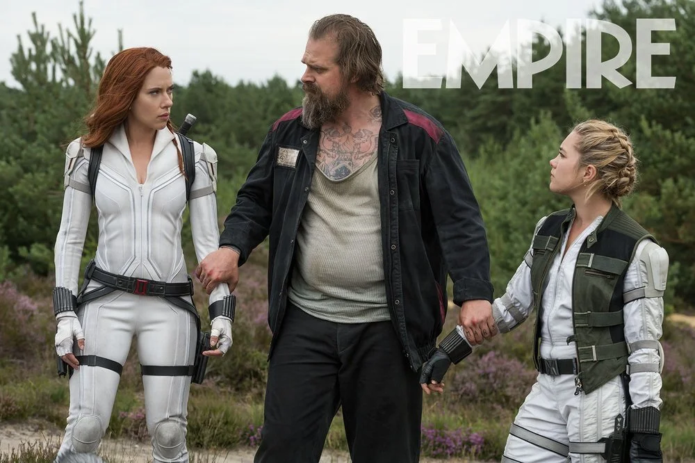 Thanks to Empire, we have a couple of new photos to share with you from Marvel’s Black Widow. The first image is of Natasha (Scarlett Johansson) alongside her "family” members including Florence Pugh’s Yelena Belova and David Harbour’s Alexei Shostakov a.k.a. Red Guardian.