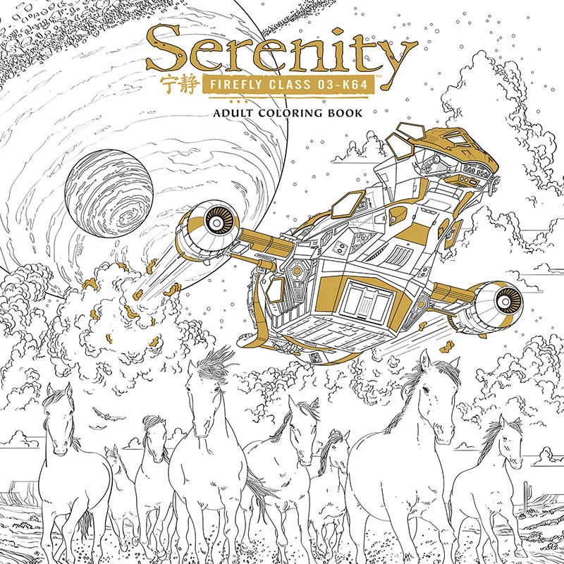 Serenity Adult Coloring Book: Join the crew of the Serenity on an adventure through the ‘verse where you can relive your favorite moments from the Firefly series- and more! This stunning adult coloring book is filled with 45 detailed and completely original black-and-white illustrations for you to color however you desire.