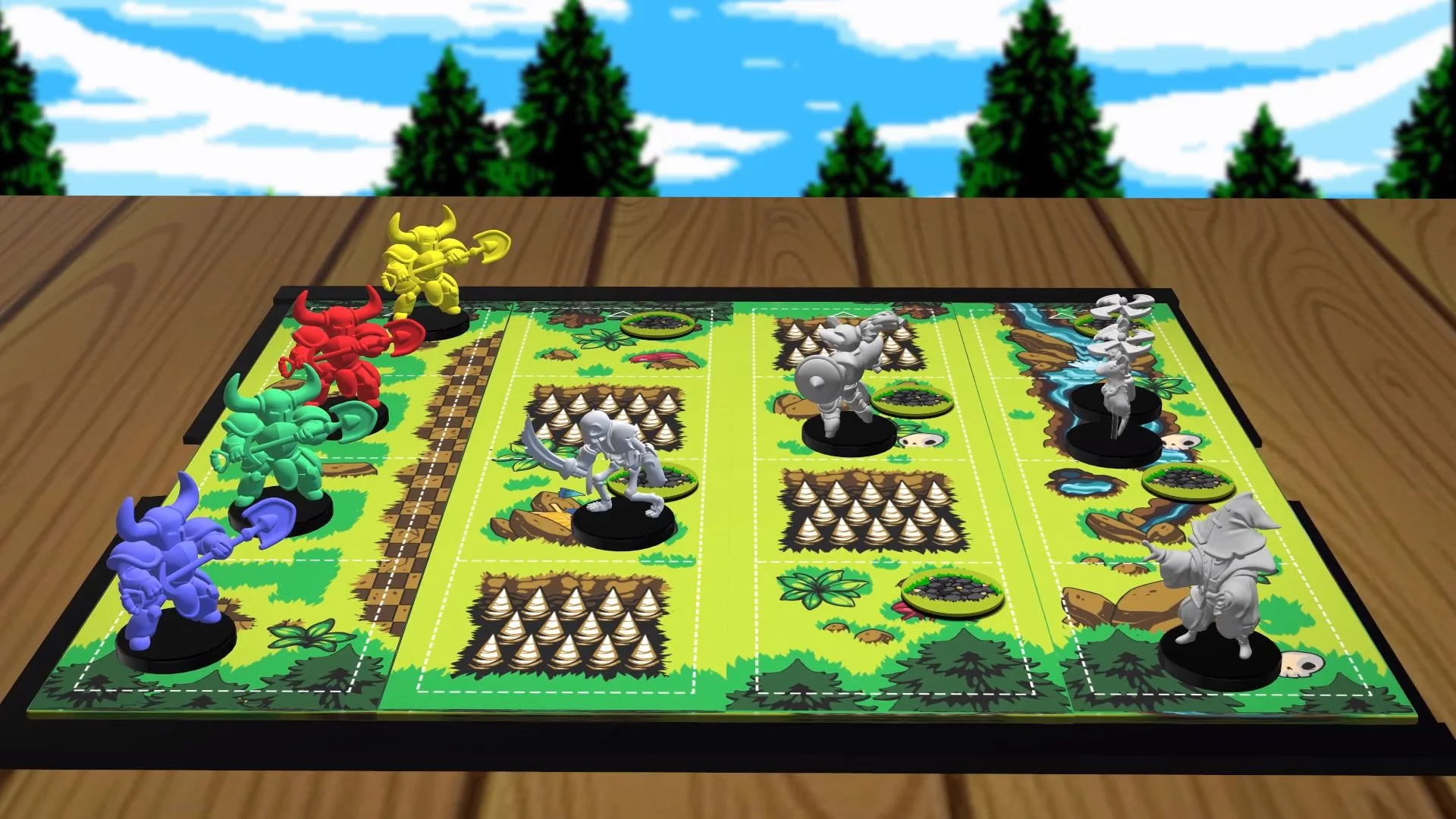 There are two versions of Dungeon Duels that you can order. You can get the 2D version which features cardboard standees for all the characters, and this is available if you pledge $40. If you pledge $70 though, you can get the 3D version which includes everything from the 2D version plus pre-assembled 3D miniatures.