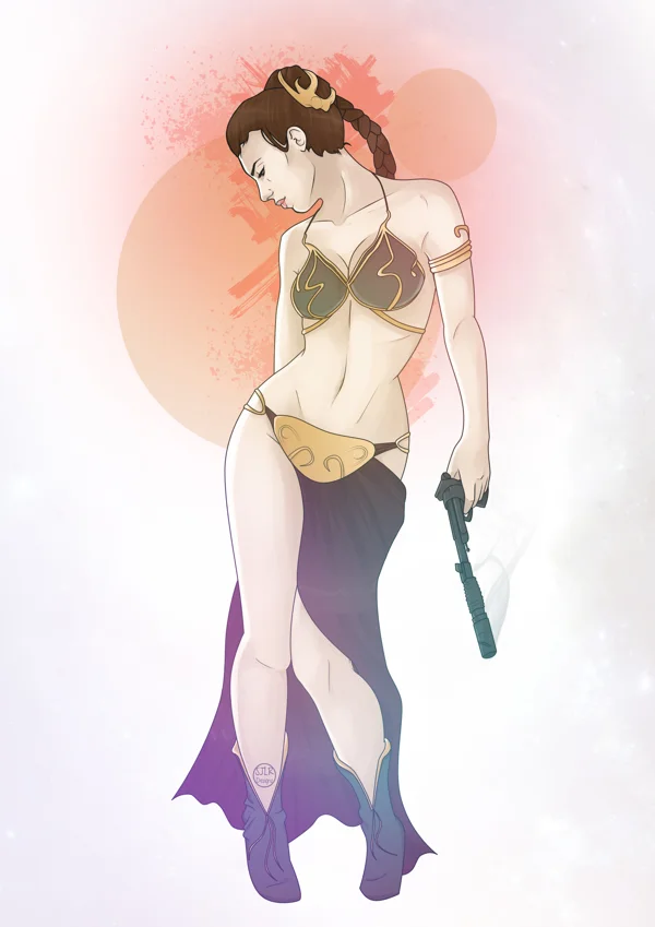 Here's a wonderfully illustrated piece of Star Wars fan art created by Samantha Royle featuring Slave Leia. It seems like it's been awhile since we have posted any Sleve Leia art, so here ya go!