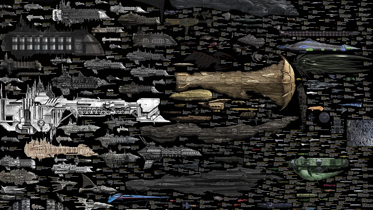This science fiction spaceship size comparison chart is massive. Because its creator, Dirk Loechel, keeps updating it, I'm not going to embed the image, but link to the Deviantart page. This is seriously impressive, and I can't even think of the numbers hours required for research and layout.