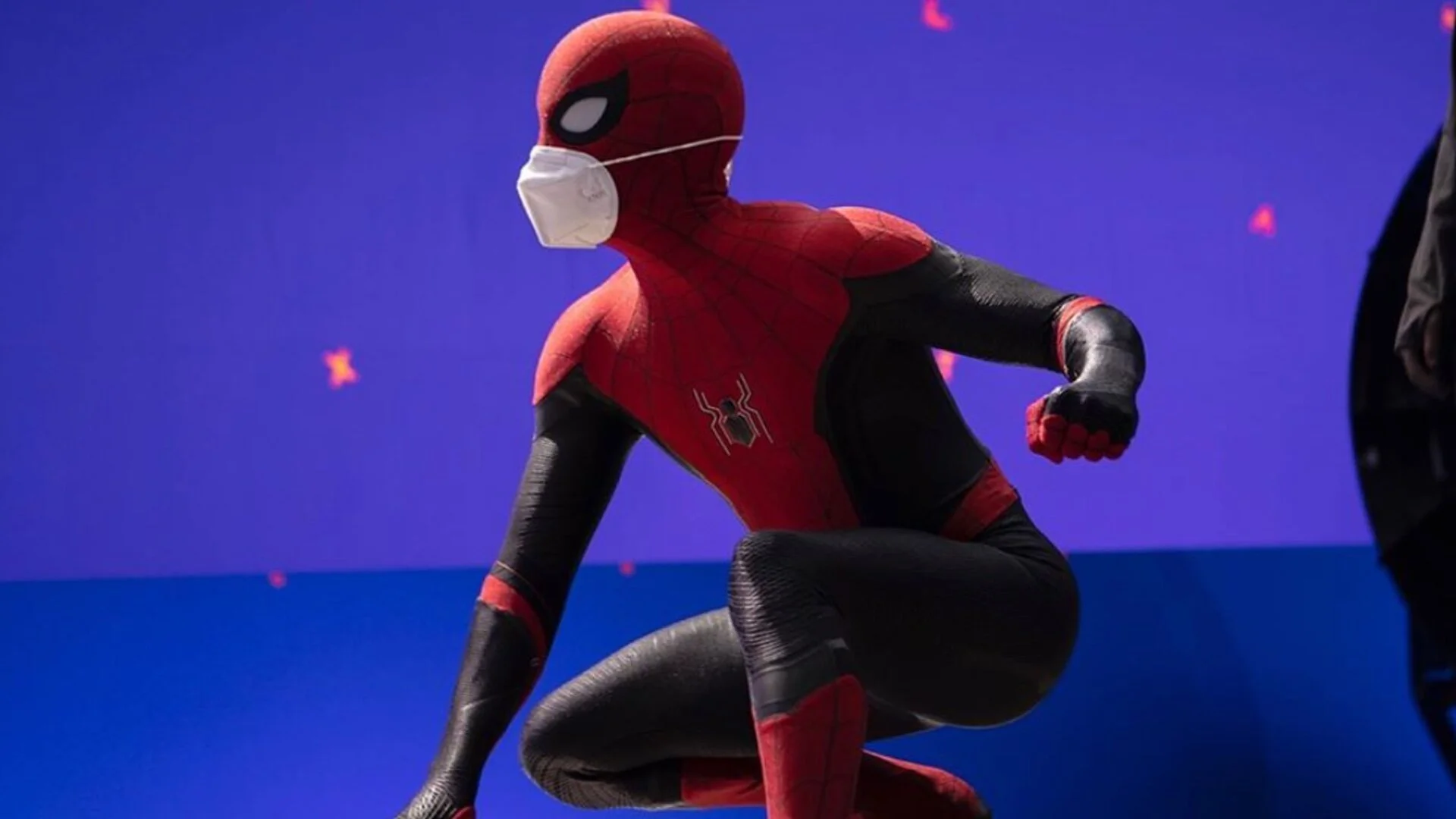 Tom Holland shares shared a new photo from the set of Spider-Man 3. It features Spidey sporting his black and red costume along with two masks. His regular Spider-Man mask, and some extra protection from the pandemic.