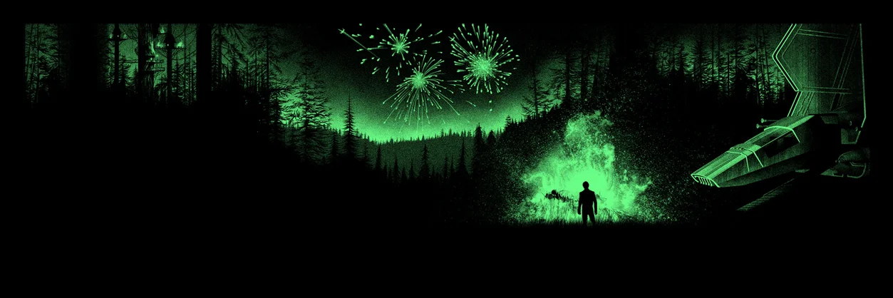 In celebration of Star Wars day next month Acme Archives will be releasing a series of limited addition prints for fans to purchase. The posters will be released on May 4th, and they come from artists Mark Englert, Dave Perillo, Ian Glaubinger and Masey. My favorite one is the glow in the dark print that represents the beginning and the end of the original Star Wars trilogy. /Film debuted these posters, but there are still three more that have yet to be revealed. The posters will go on sale on May 4th at 1 p.m. PST at Dark Ink Art.