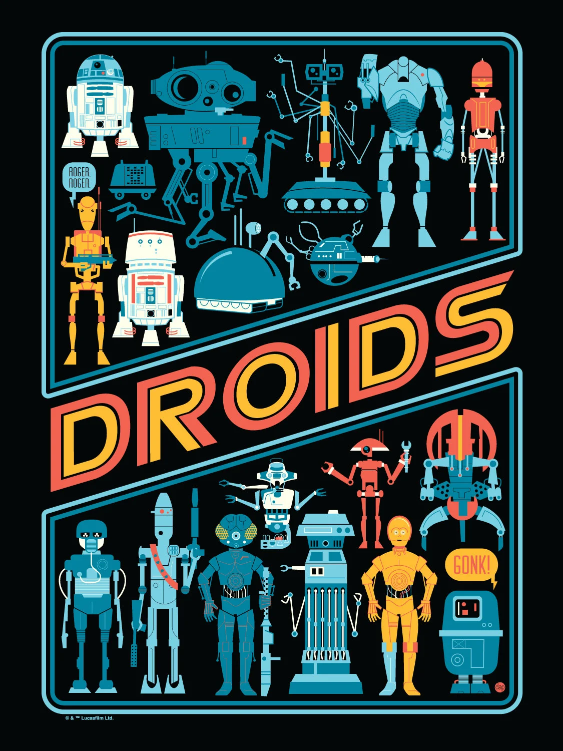 “Droids” by Dave Perillo is an 18 x 24 inch signed silk screen print in an edition of 250. It costs $50.