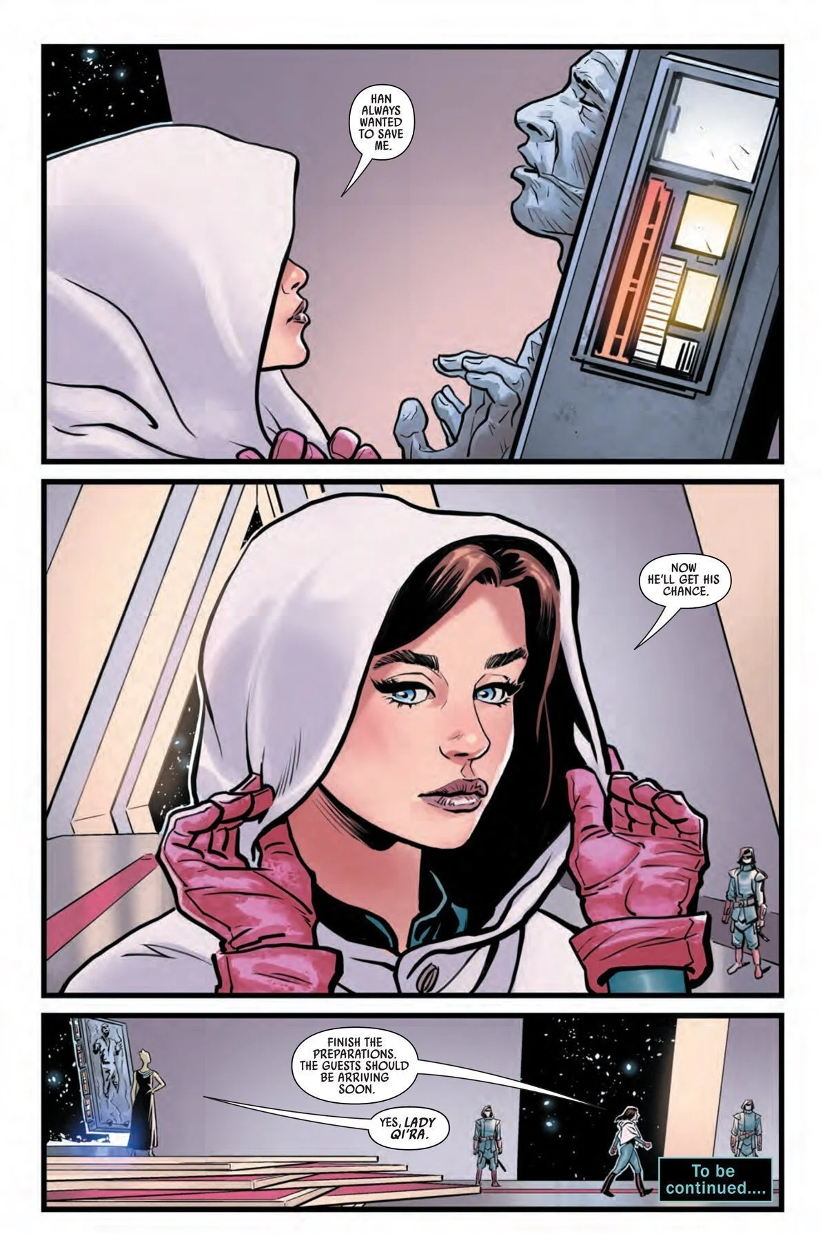 I loved this little reveal! I always wondered if we would see these two characters reunite after their history together. It’s interesting and cool to see that Han Solo passed through her hands while he was frozen in Carbonite. It’ll be interesting to see how this plays out because we all know how it ends up in Return of the Jedi.