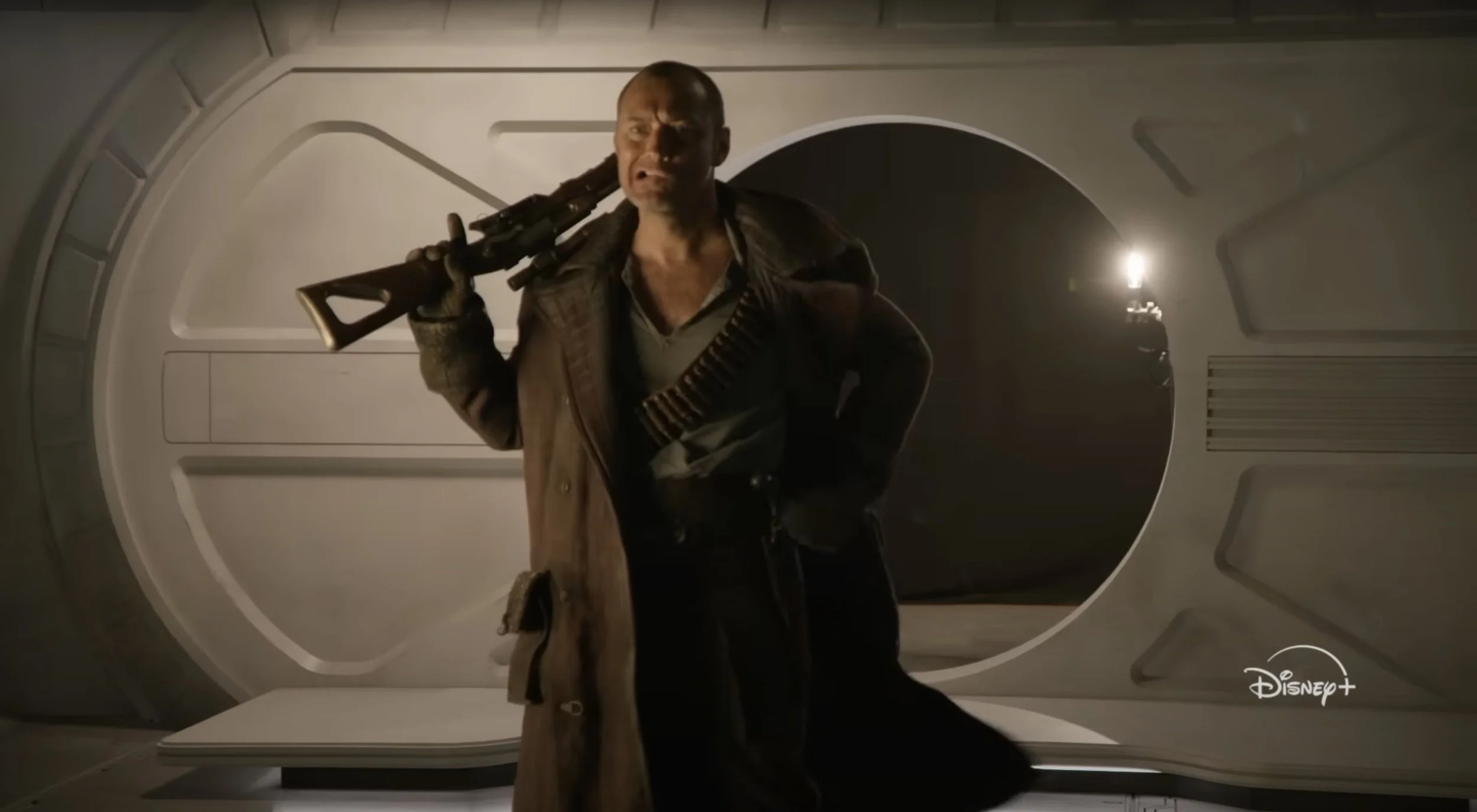 The other clip finds the characters attempting to convince Jude Law's character Jod Na Nawood to return for SM-33, which he is reluctant to do. Nawood may be posing as a Jedi, but he may not be being completely honest with his young companions.