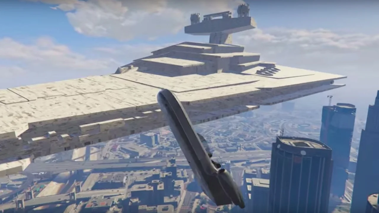 We've seen a lot of mods in Grand Theft Auto V since the game was released on PC, but never one quite like this: Uproxx points us to TwoDynamic's video that showcases some awesome Star Wars vehicles cruising around (and above) Los Santos. There's an Imperial Star Destroyer, the X-34 land speeder, and a speeder bike, and it is pretty crazy to see these vehicles floating around the hyper-realistic world of the game. (I especially love the part where you see land speeders just sitting in traffic, as if that's the most normal thing ever.)