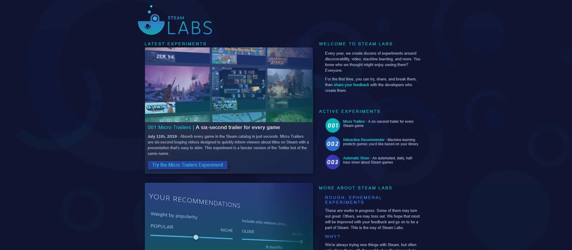 Steam wants to help users find their next game. This has led the team at Valve to look for new things to try and now, they’ve created a way for users to try out some things that they’re experimenting with. Steam Labs is a place for Steam users to go and try out some of these experiments and then provide feedback so the developers know what works well and what doesn’t. The first batch of three experiments are already up on the site and they’re interesting. Here’s a quick breakdown: