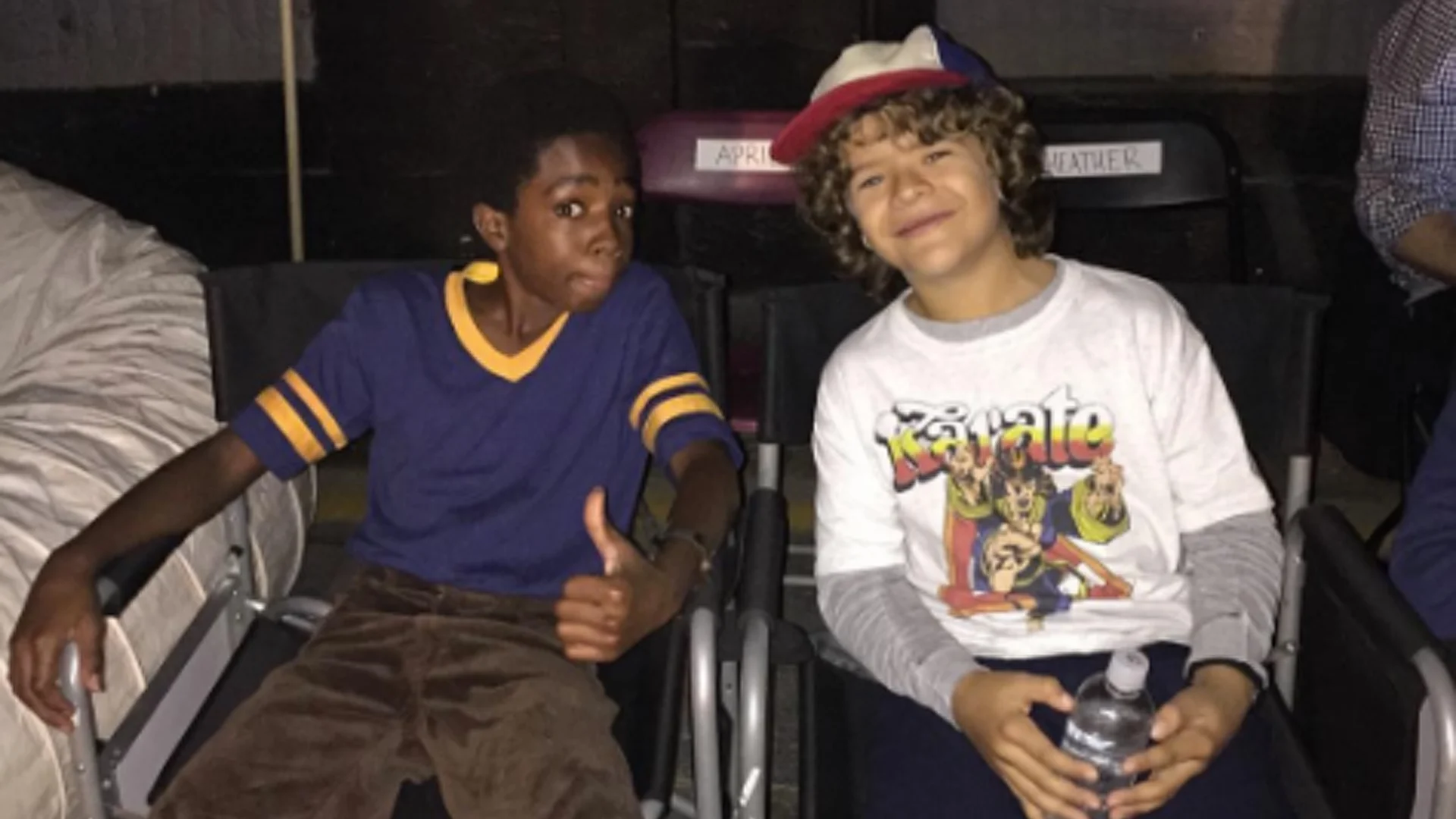 Below you'll find a video from AMC's Geeking Out featuring Gaten Matarazzo (Dustin) and Caleb McLaughlin (Lucas) showing off their secret handshake and apparently their own secret language. Below that, you'll find a few adorably fun photos from the set of the first season of Stranger Things.