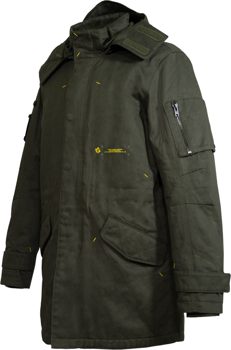 The Big Boss approved this parka for the use in the harshest conditions. The durable cotton twill shell is perfectly apt to withstand most environmental influences. Due to a thick padding and the length of this jacket, even freezing cold becomes bearable.