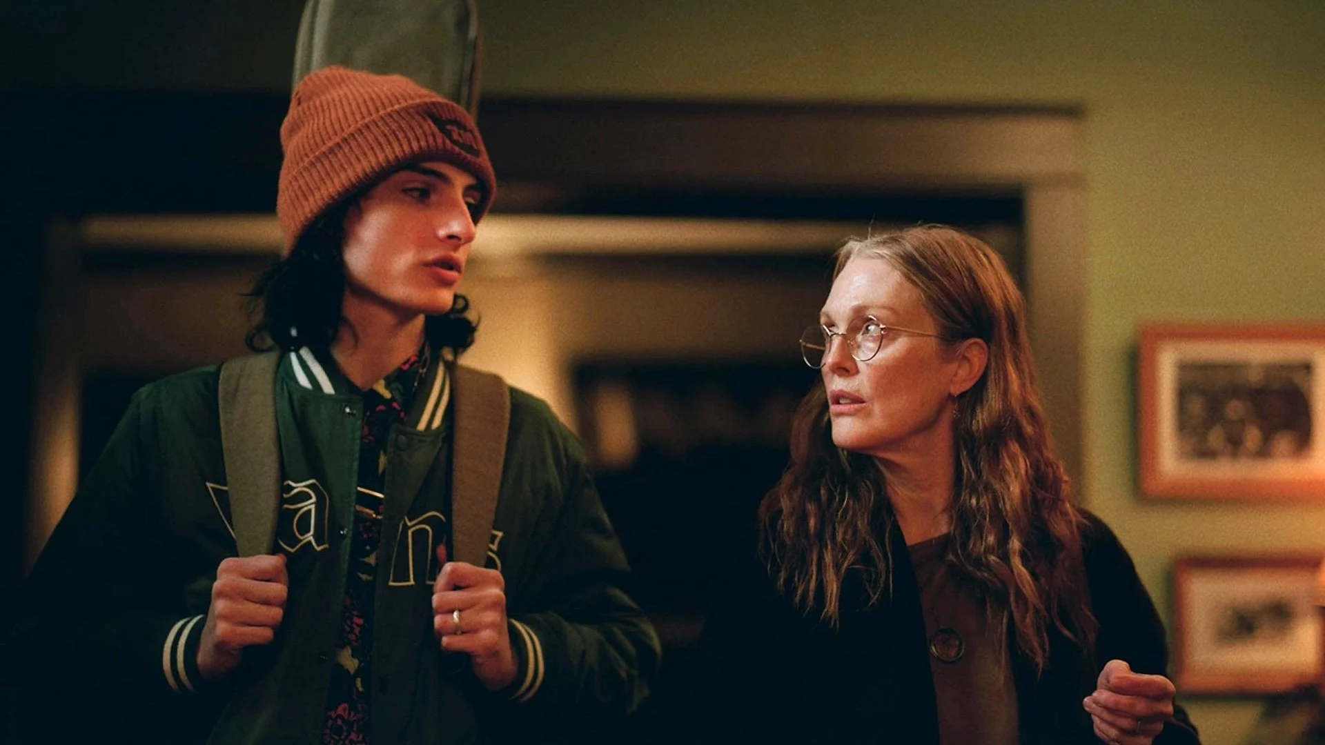 The film does have a great cast that includes Julianne Moore and Finn Wolfhard, who both give great performances. Wolfhard plays a teenager named Ziggy who spends a lot of his time singing songs for an online fan base that he’s managed to grow. He’s super proud and very baggy about his accomplishments. Moore plays his mom, Evelyn, who just doesn’t get it. She doesn’t understand what he’s doing with his life. As you might imagine, there’s a lot of arguing back and forth between them. Sometimes it’s amusing, sometimes it makes you want to cringe.