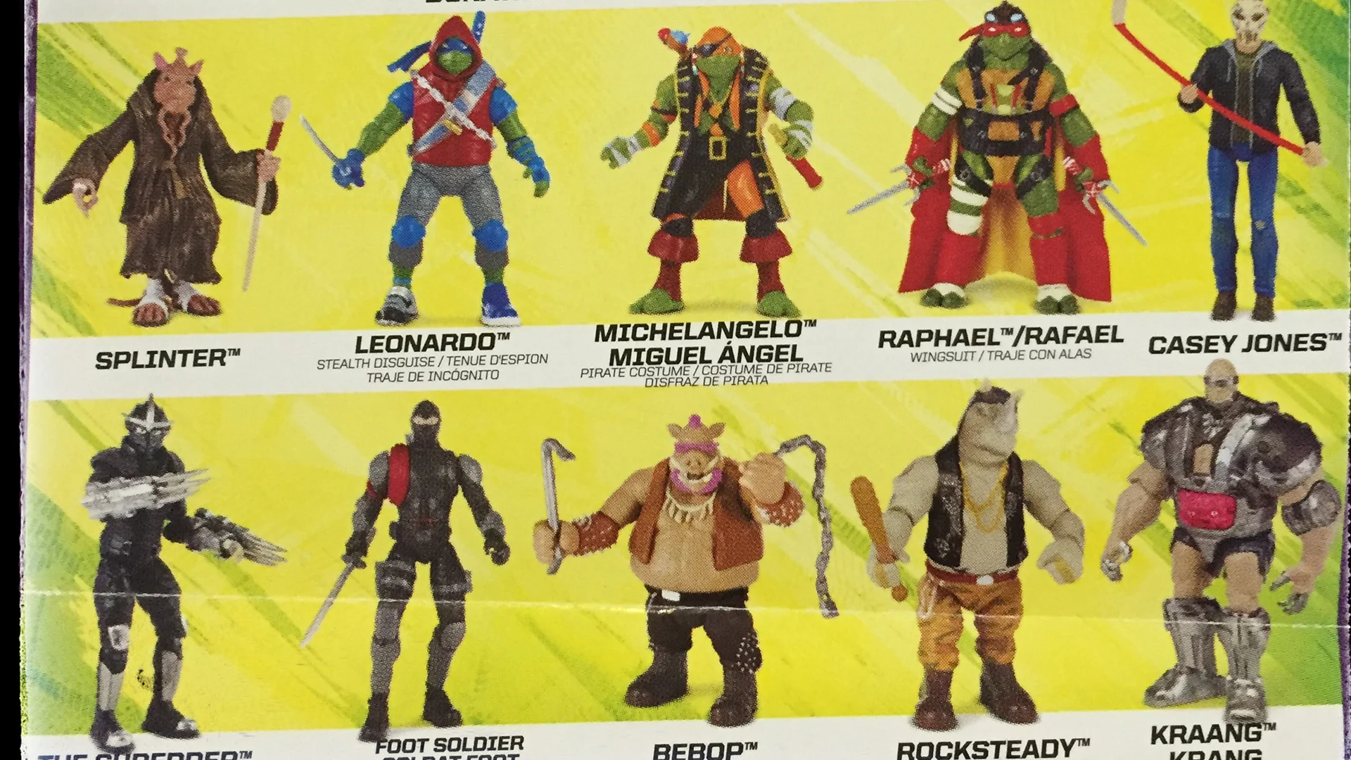 The leaked catalog scans also reveal figures of Casey Jones, Splinter, The Shredder, a Foot Soldier, Bebop, Rocksteady, Raphael (wearing what looks like a wingsuit), Leonardo, and Michelangelo (who wears a pirate costume).
