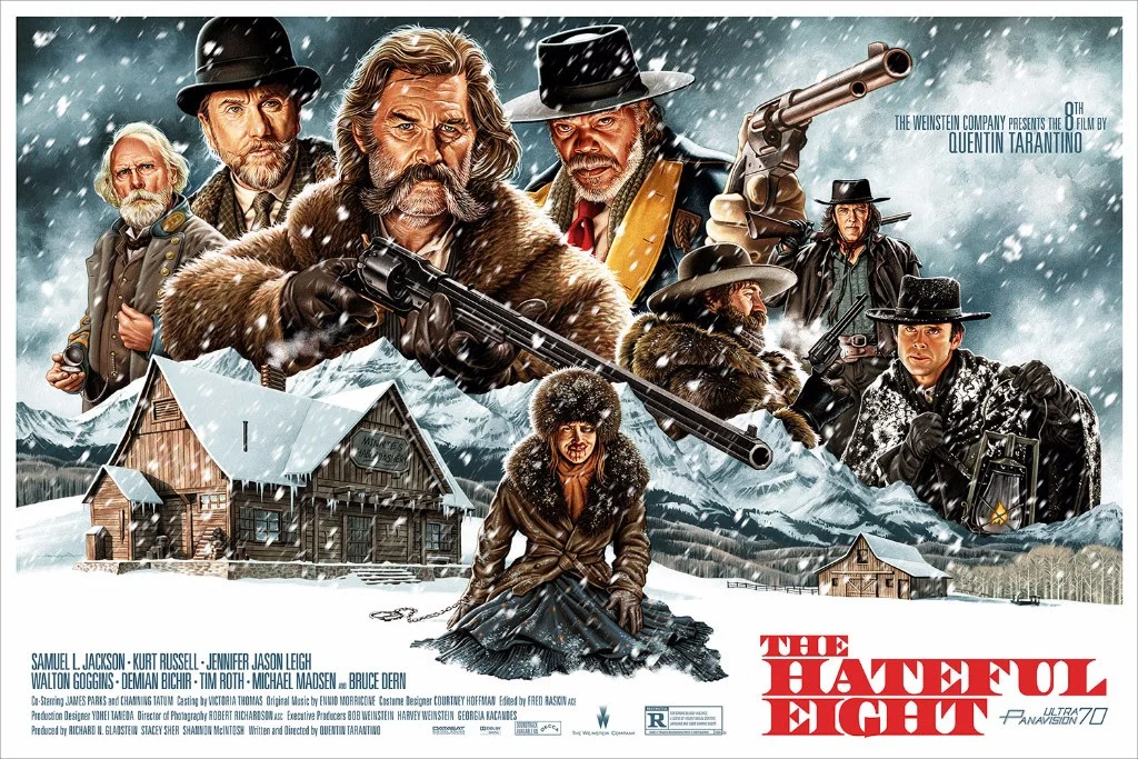 We've written about Jason Edmiston's artwork on the site a bunch of times before, but here's one of his best pieces of work thus far: a glorious piece celebrating writer/director Quentin Tarantino's fantastic 2015 western The Hateful Eight.