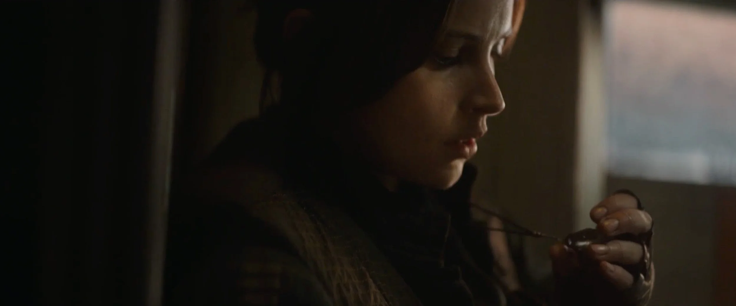 There was one plot element that was teased that could end up being a huge deal for the film. Early on in the trailer, we shown a moment between a young Jyn Erso and a person that we assume is her mother. Her mother gives her a necklace with a crystal on it and tells her to "trust the Force." It's a very brief moment, but whatever it is is so important to Jyn that she holds on to that crystal as she grows up.