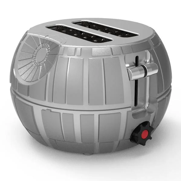 Does this Death Star toaster contain the ultimate power in the universe? That remains to be seen, but one thing's for sure: it will actually brand the Star Wars logo onto every piece of toast that you...well, toast. And this is an officially licensed product, too — none of that amateur sh*t around here. This bad boy has a reheat, defrost, and quick-stop function, and it will set you back around $67. It ships in September...just enough time for you to forget you ordered it and be pleasantly surprised when it arrives. Check out some photos below: