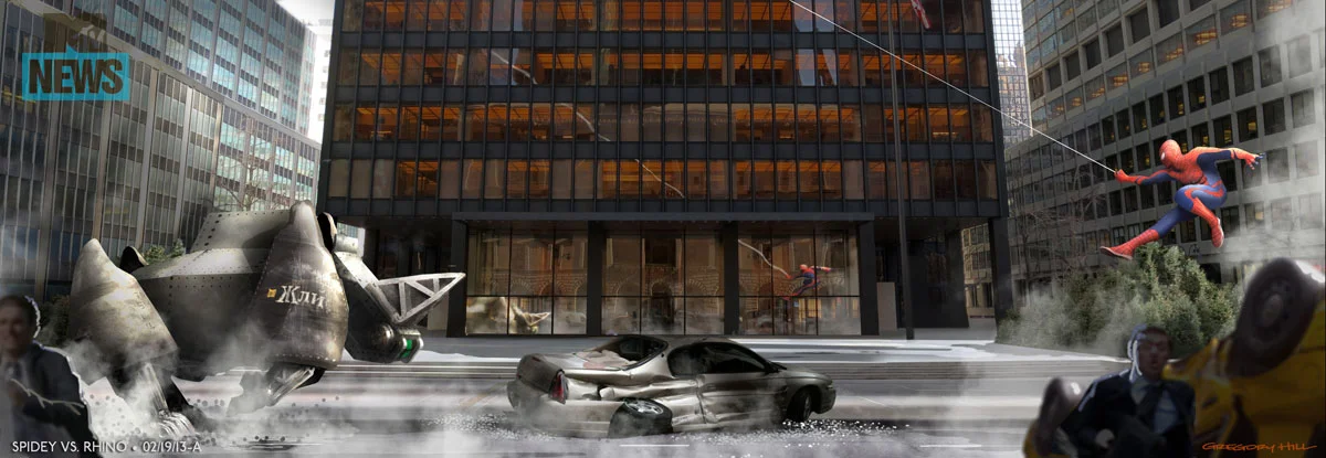 Here's a new TV spot for The Amazing Spider-Man 2 for you to check out along with an interview with the cast and crew of the movie in which they discuss the Sinister Six. The interview comes from MTV, and it includes some new footage from the movie as well. Everyone is asking whether or not we'll see the Sinister Six appear in the sequel, but everyone is keeping their mouths shut on that one. I've also included some new concept art and images. It looks like illustration above was done before they made the change to Spider-Man's suit. The movie is set to be released on May 2nd.