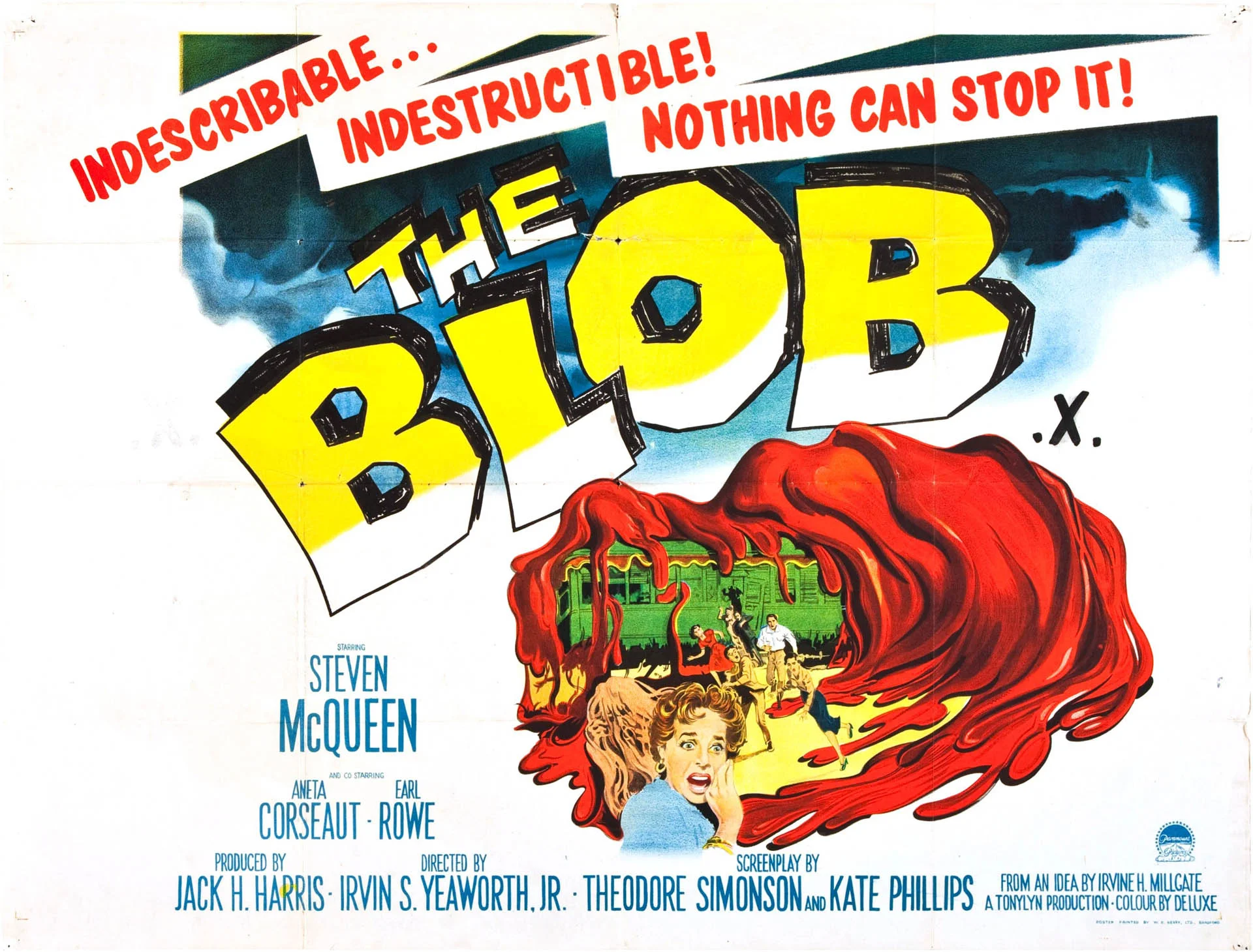The original movie was released in 1958, it starred Steve MQueen, and I'm a big fan of it. I enjoy watching those old sci-fi and horror flicks. In 1972 a very low-budget sequel was made called Beware! The Blob, which was wonderfully terrible. Then in 1988 there was a remake of The Blob that was co-written by Frank Darabont (The Shawshank Redemption, The Walking Dead), which wasn't very good, and it completely bombed at the box office
