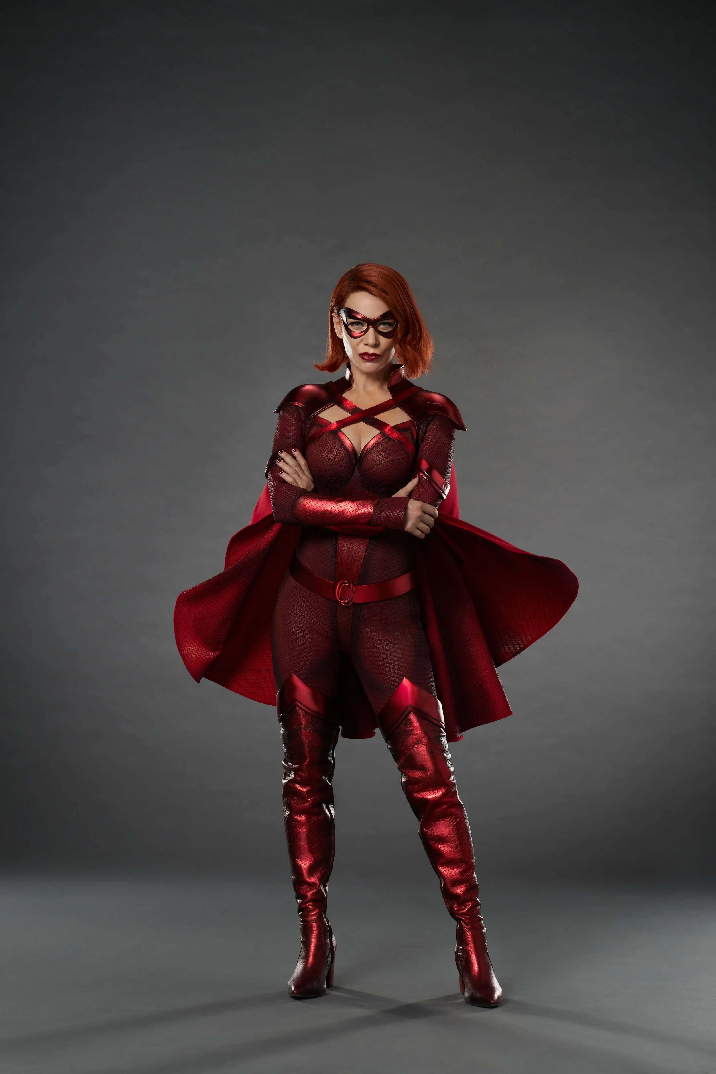 Here’s our first look at The Walking Dead star Laurie Holden completely decked out in costume in the role of Crimson Countess in The Boys Season 3. This character will make her debut in the series along with Supernatural's Jensen Ackles as Soldier Boy. If you couldn’t tell, Crimson Countess is a riff on Scarlet Witch.