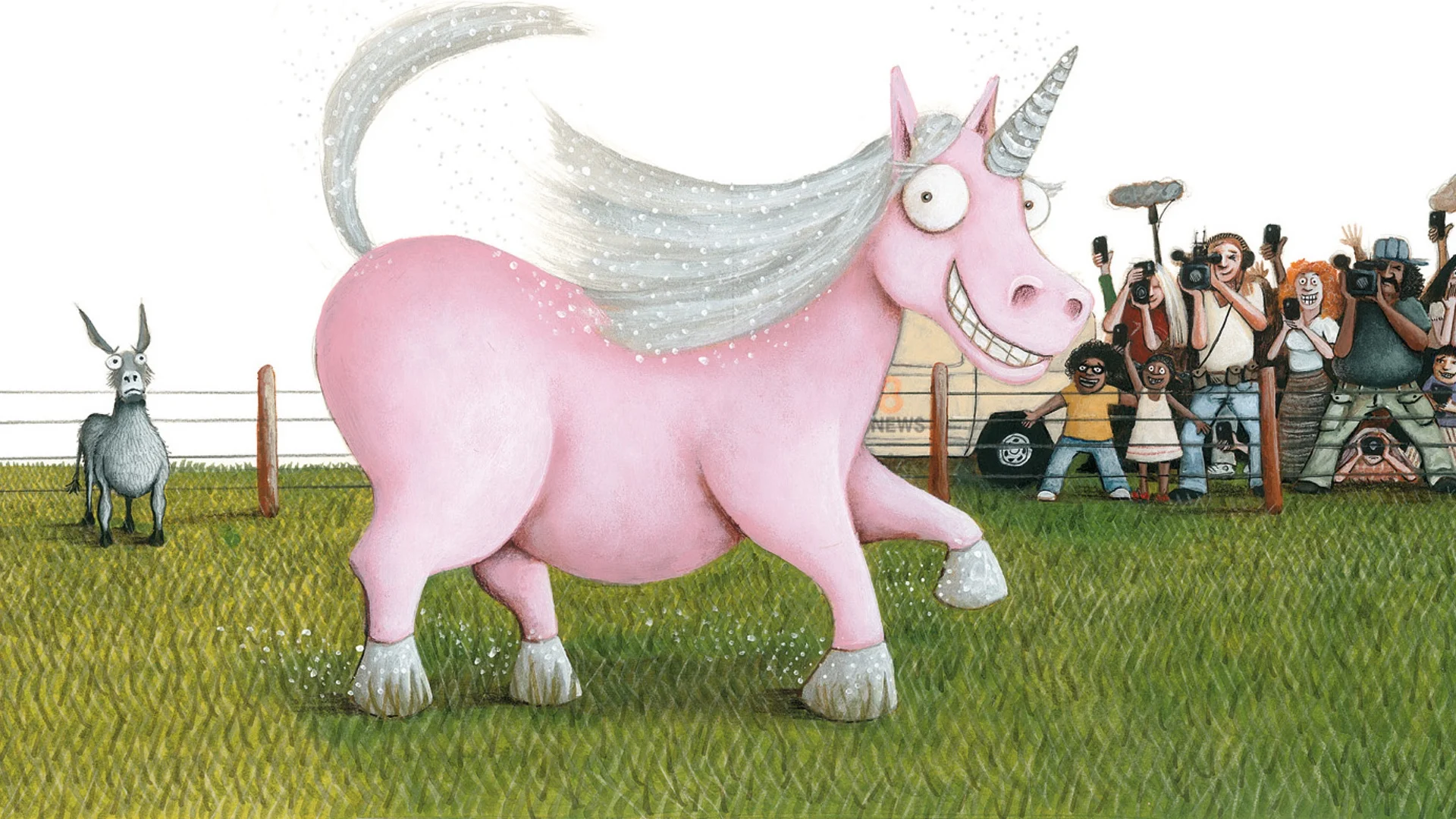 When a rare pink and glitter-filled moment of fate makes Thelma the Pony’s wish of being a unicorn come true, she rises to instant international pop-superstar stardom, but at an unexpected cost. The message of Thelma the Unicorn is about learning to love who you are, even if you don’t have sparkles.