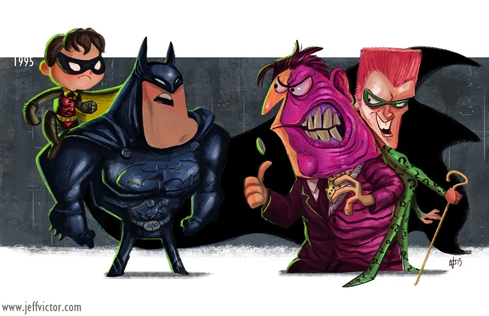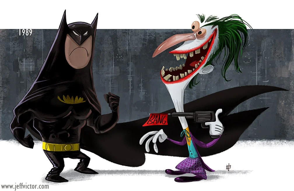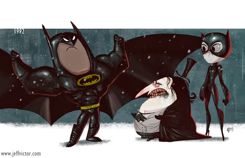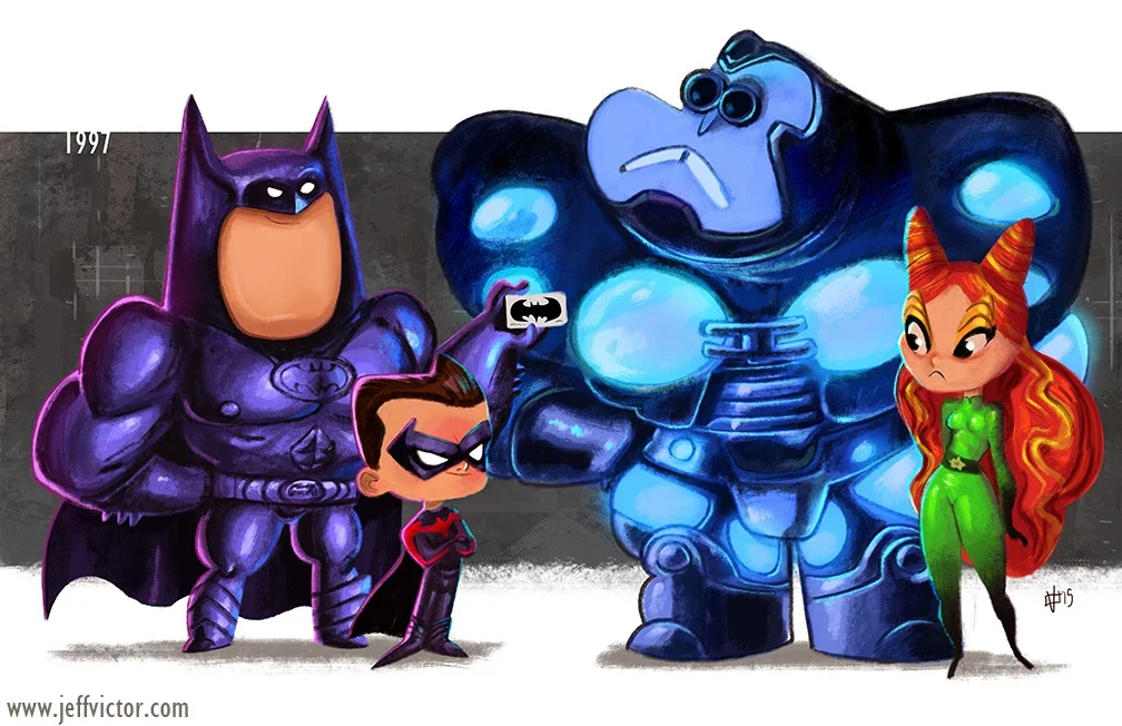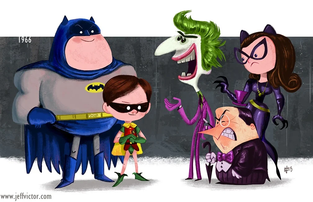 Jeff Victor is a talented artist I have been following for some time now. Over the last month he has been creating a series of cartoon style art that pays tribute to every Batman movie ever made, from the 1966 Batman film to The Dark Knight Rises in 2012. This is one of my favorite art series that Jeff has done, and each illustration includes a note from the artist about his thoughts on the film.