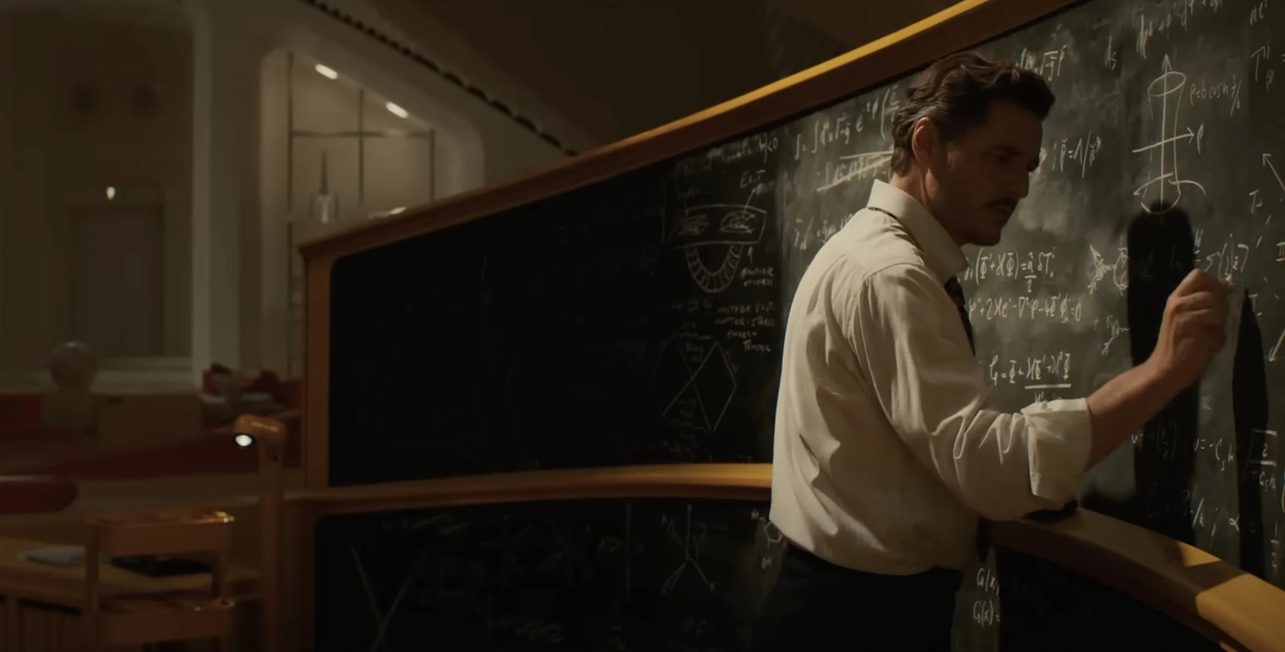 The trailer doesn’t showcase Reed Richards’s stretching abilities, but it does highlight his greatest asset… his mind. There’s a shot where we see him working on a blackboard, and it reveals complex calculations, but one diagram stands out: a possible blueprint for bridging realities.