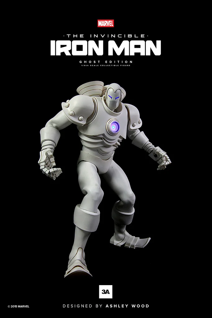 Last year we shared a set of custom-made Invincible Iron Man action figures created by Ashley Wood. Those featured a radically different design for Iron Man, and today we have a new one to share with you called the "Ghost Edition." As you can see, it’s a cool white armor design.