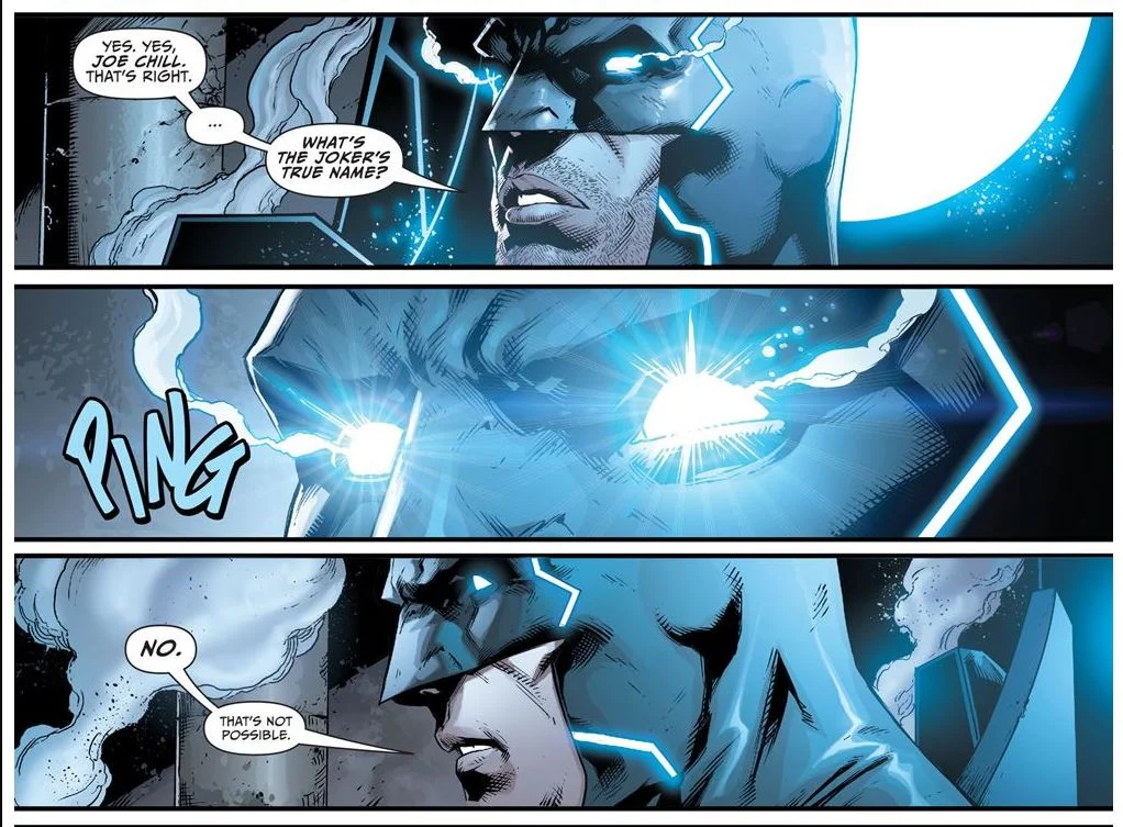 In Justice League #42, Batman sat in Metron's Mobius Chair and asked it what the true name of The Joker was. It wasn't revealed at the time, but the reaction Batman had after finding out was interesting enough for fans to want to learn more. I included that little part of the comic below for you to check out. We didn't know if DC would let readers in on the secret at the time, but the big reveal is officially coming!