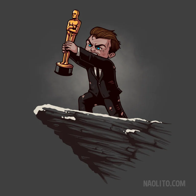 For all the years we had to watch Leonardo DiCaprio lose at the Oscars, last night made it all worthwhile. It was like I was watching my sibling graduate from college or something...I got that emotional and full of pride. This art from Naolito really sums up how I felt nicely. See more of his stuff at this link.