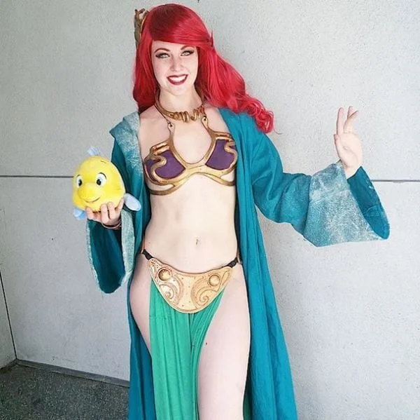 Maid of Might Cosplay is the brains behind this amusing character cosplay mashup that combines the look of Ariel from The Little Mermaid with the style of the slave outfit that Jabba made Princess Leia wear in Return of the Jedi. The photo was snapped by David Ngo.