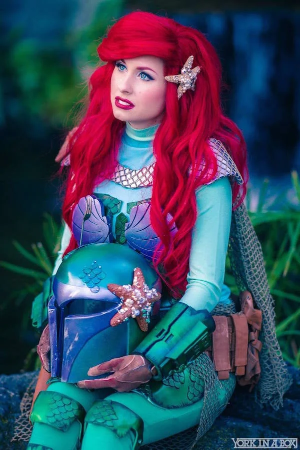 I also included an Ariel Boba Fett cosplay mashup for your viewing enjoyment. The Little Mermaid Mandalorian armor was created by cosplayer Traci Hines, and the photos you see of her in costume were taken by York In A Box.
